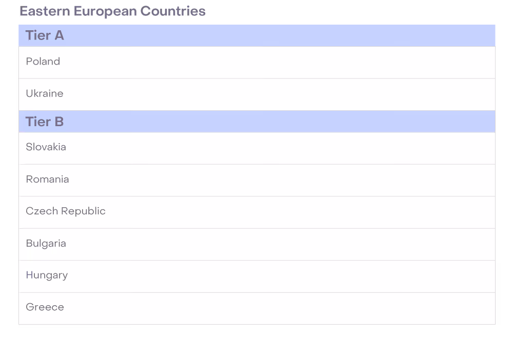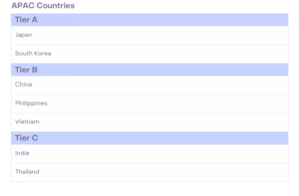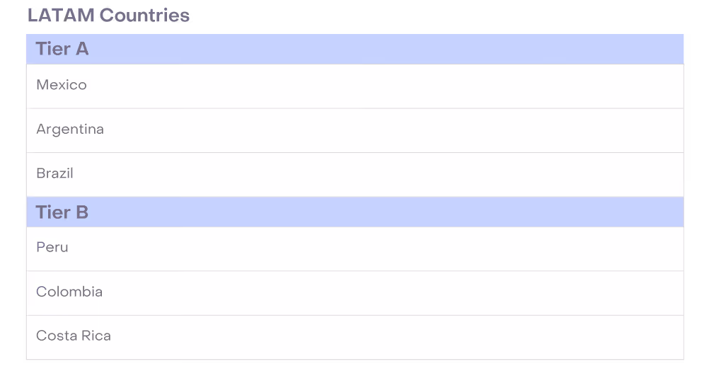 - Tiers can future proof your compensation bands. Building compensation tiers that include the countries you may recruit from in the future lays the compensation groundwork for hiring in that region. When the company eventually looks to expand, you’ll already have a plan in place, reducing some of the friction associated with hiring in a new locale (per our research, the most common labor markets for U.S.- based businesses to hire from outside the U.S. are Australia, Ireland, and England).