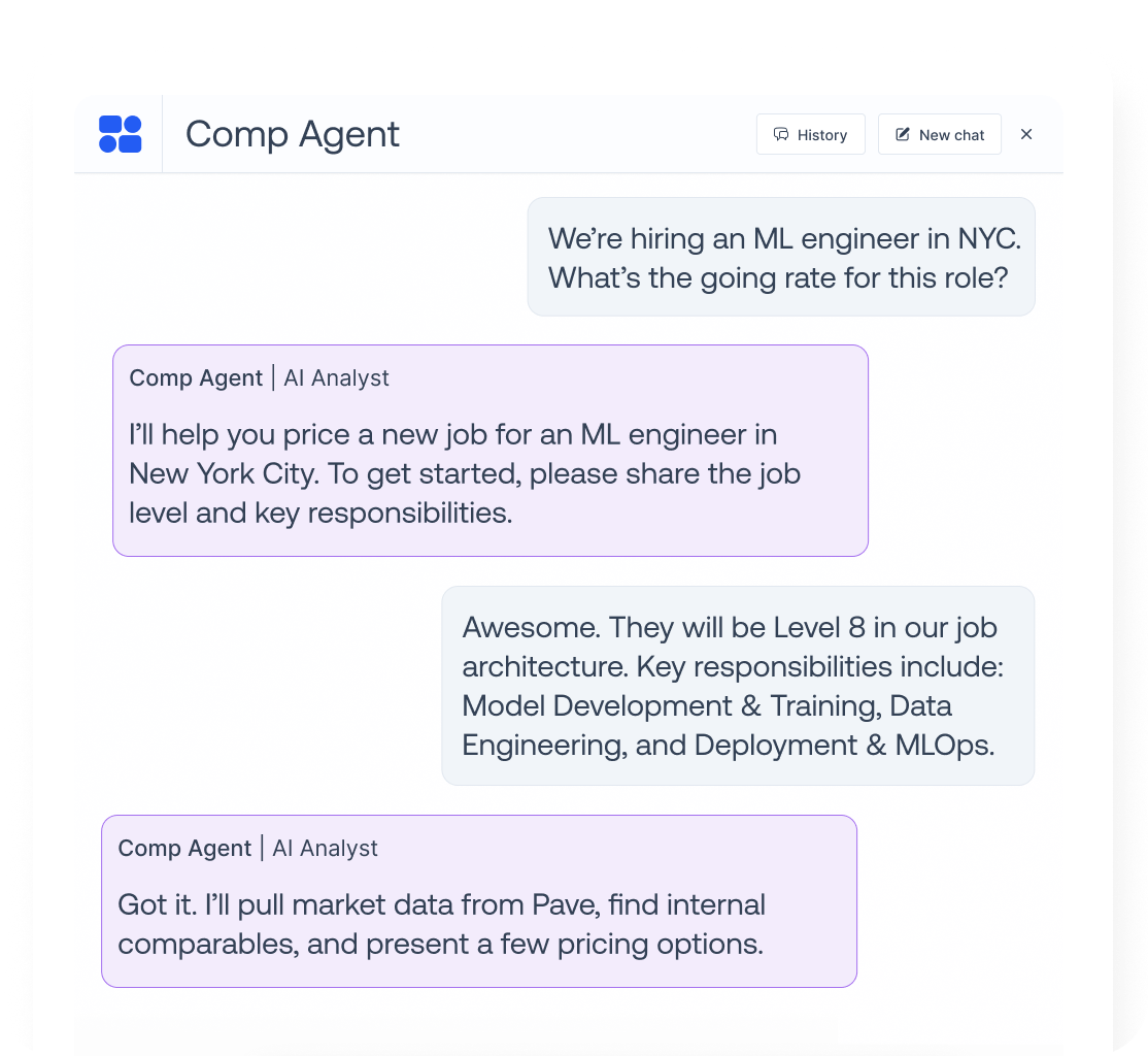 Generic AI solutions don't work for compensation. To make decisions with confidence, you need purpose-built tools powered by real-time compensation intelligence. Pave makes this possible.
