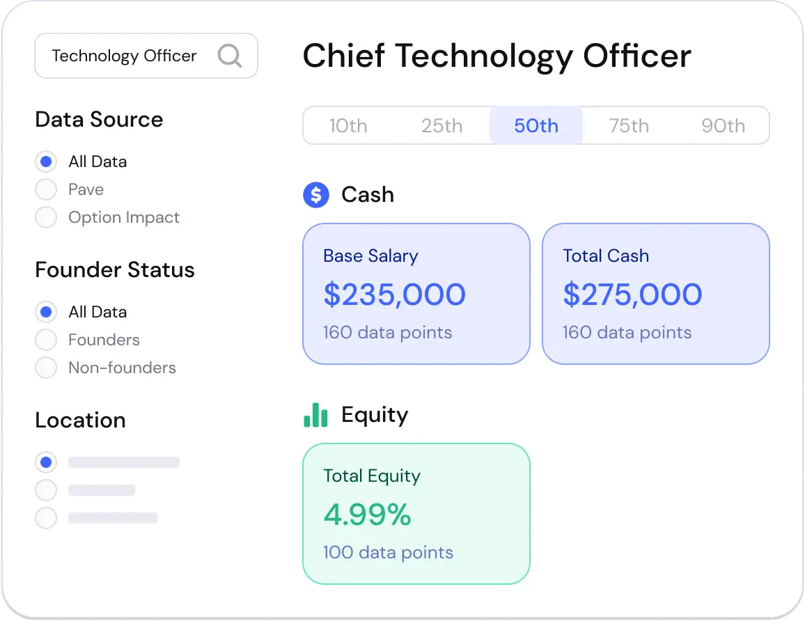 Use Pave's intuitive tool to slice data by company stage, location, role, level, and more.