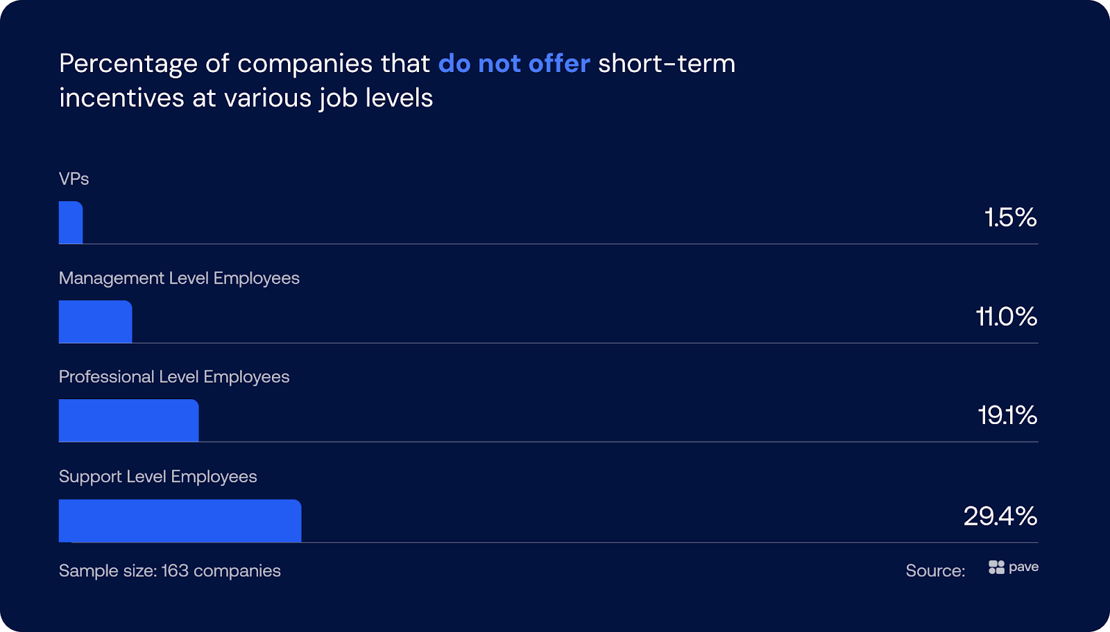 Pave dug into this topic in a recent pulse survey in Pave Data Lab, our community for total rewards and compensation leaders. We asked participants to share their strategies around short-term incentives for teams outside of sales. The dataset for the charts below includes 163 companies participating in Pave's pulse survey in Pave Data Lab as of July 2025.